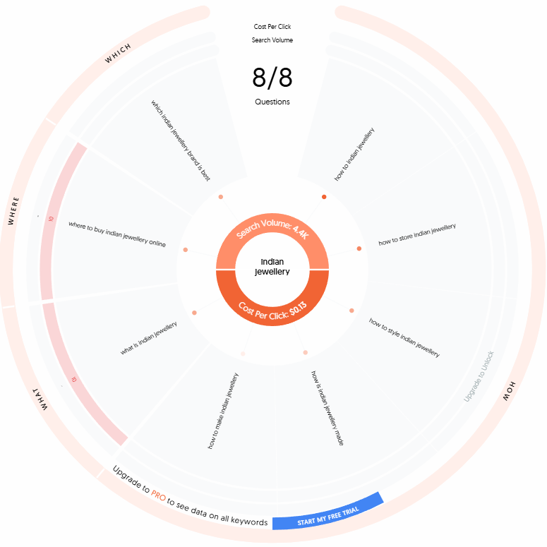 For example, if you own a jewellery brand and want to attract customers through blogs, you would start by discerning what they’re searching for and where can you deliver. By entering “Indian jewellery” into platforms like AnswerThePublic, you can obtain a detailed list of trending user inquiries.